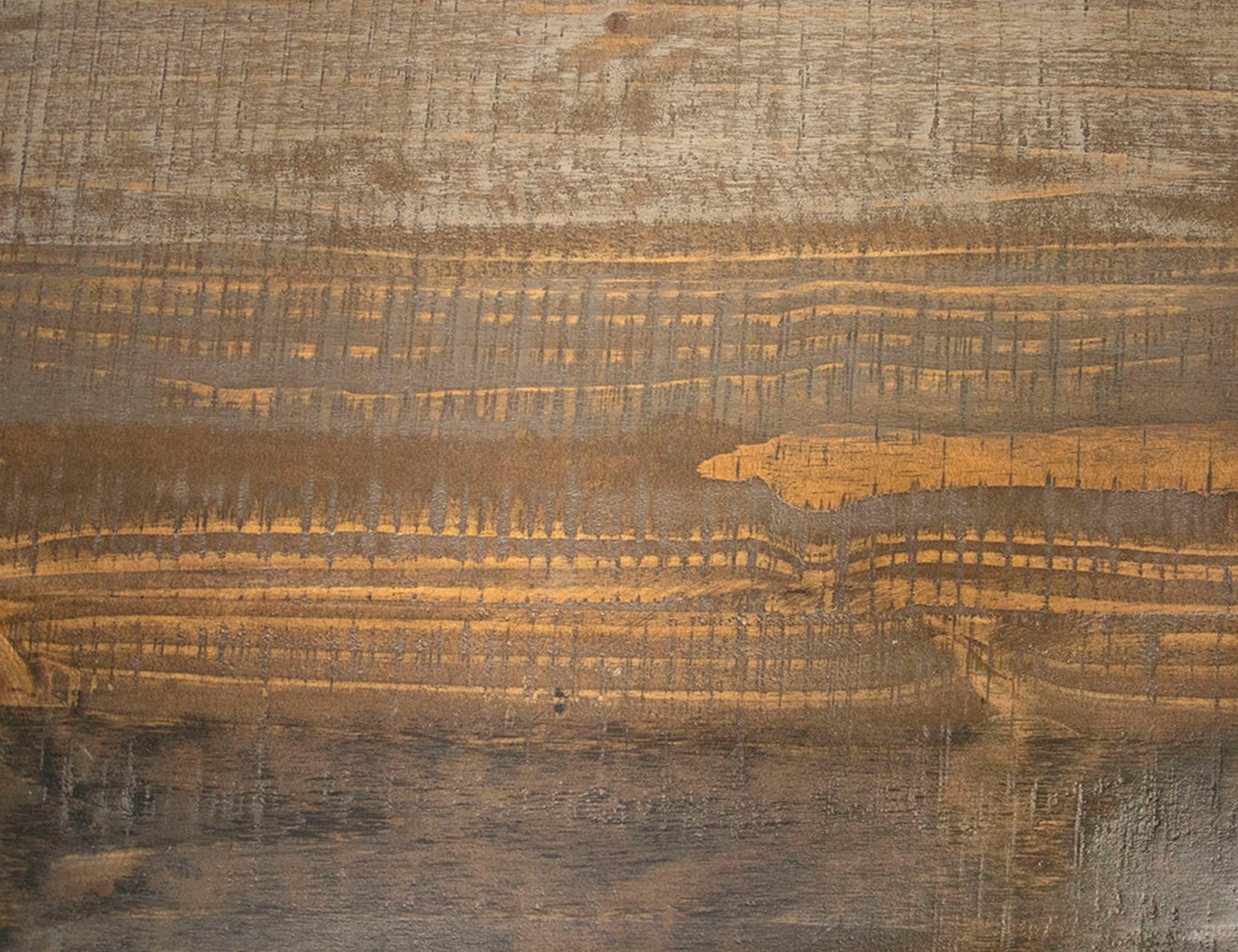 • Multi-step hand-painted water-based acrylic lacquer finish in gray and brown tones for an updated “reclaimed wood” look.