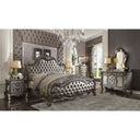 Versailles II - Queen Bed - Silver Synthetic Leather & Antique Platinum