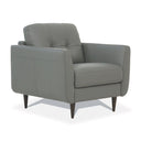 Assembled, Loose Back & Tight Seat Cushion (1+1), Button Tufted •• CONSTRUCTION •• SEAT: Webbing; Inside Frame: Wood, Contrast Tone Stitching, Box Cushion • BACKREST: Button Tufted Cushion • ARMREST: Flared Style, Arm Size: 5 Inches • Wooden Tapered LEG: Dark Walnut Finish; Leg Size: 6 Inches ••• Material: Leather (Solid Pattern) • Pillow NOT Included