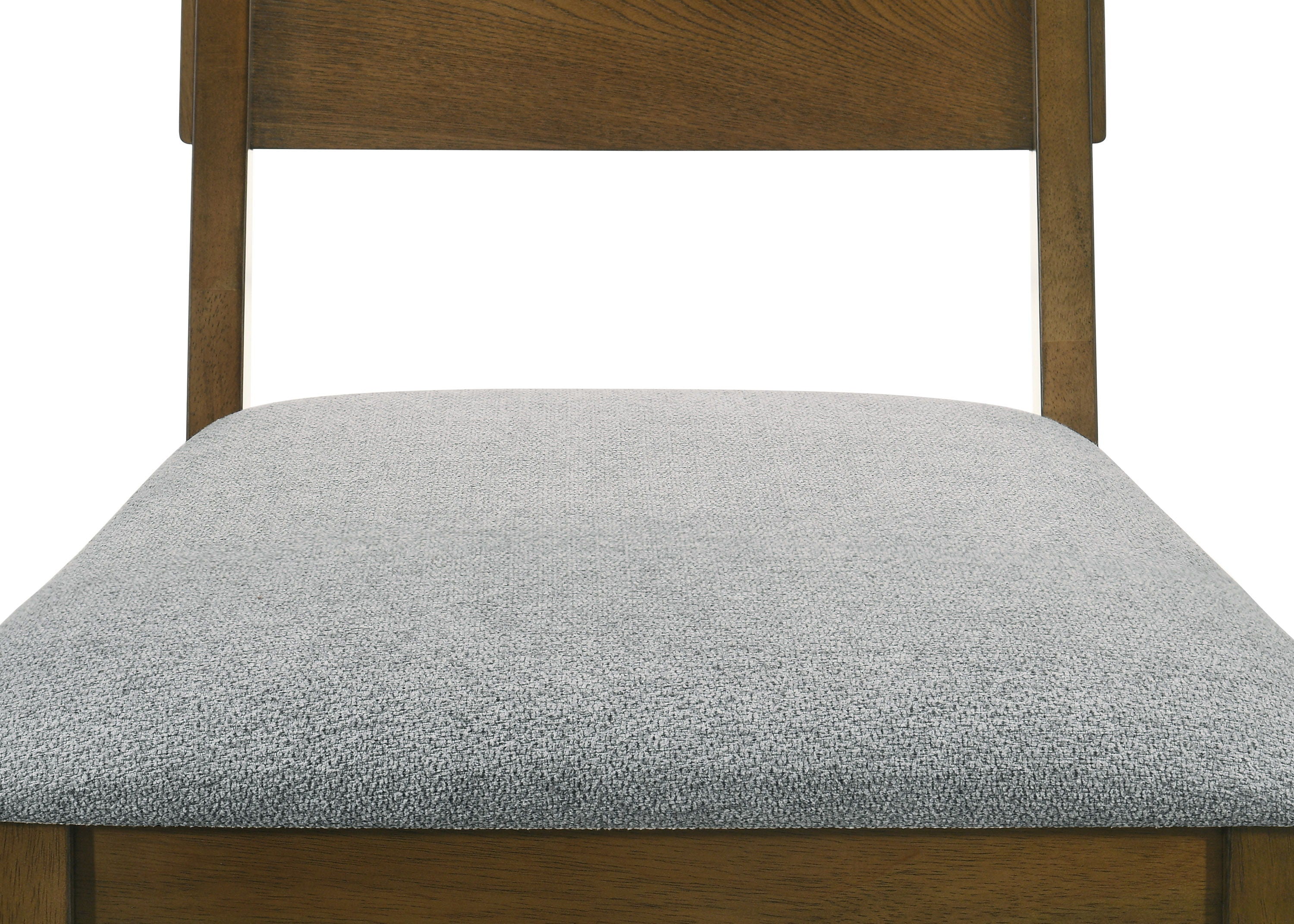 This dining group brings a blend of rustic charm and contemporary elegance to any dining space. Crafted from rich wood with a warm finish, it radiates an inviting feel that’s perfect for family gatherings and stylish entertaining. The sturdy table features a spacious top with a self storing leaf, providing ample room for meals, while the bench adds a casual yet versatile seating option. Each chair is designed with a contoured back and upholstered seat for exceptional comfort, seamlessly combining form and function. The neutral tones and clean lines create a look that effortlessly complements modern and farmhouse aesthetics alike, making it an ideal choice for those who value both style and functionality in their dining area.