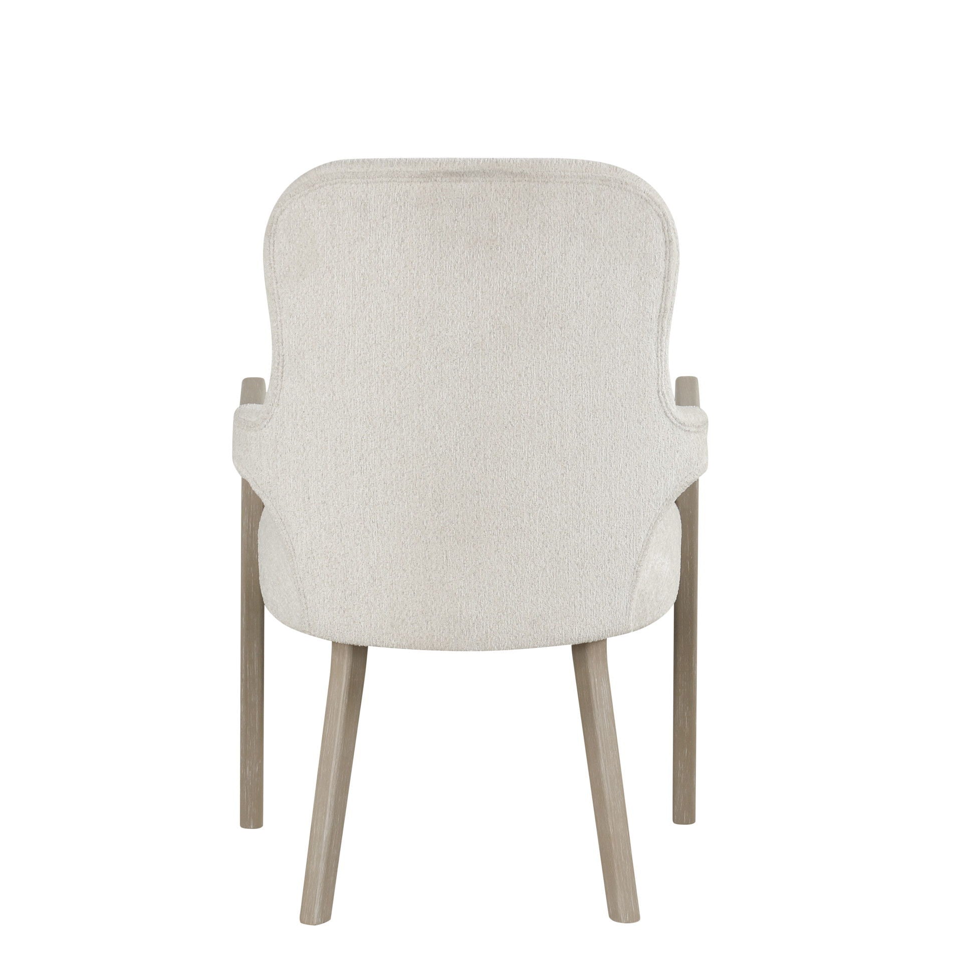 The Gwendolyn Arm Chairs (Set of 2) in Cerused Taupe offer timeless style, plush comfort, and lasting durability. Made from solid rubberwood and oak veneers, each chair features softly padded seats and armrests with clean lines and a sleek silhouette. The cerused taupe finish showcases soft beige tones and visible wood grain, creating a calm, versatile look that brings modern elegance and comfort to any dining space.