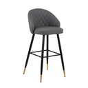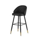 The Oliver Vegan Leather Bar Chair set combines contemporary style with practical features to enhance any modern space. Each set includes two bar chairs with a sleek, arched back and low profile, offering a chic yet refined aesthetic. Crafted from eco-friendly vegan leather, the chairs deliver the luxurious look of leather without the maintenance, with intricate diamond tufting for added sophistication. The sturdy, tapered iron legs provide excellent stability, resisting bending or breaking, and are accented with subtle gold detailing for a touch of elegance. Dual-purpose footrests ensure both added stability and a comfortable spot to rest your feet. A perfect blend of style and functionality, these bar chairs offer long-lasting comfort and timeless design—an excellent addition to any home or bar setting.