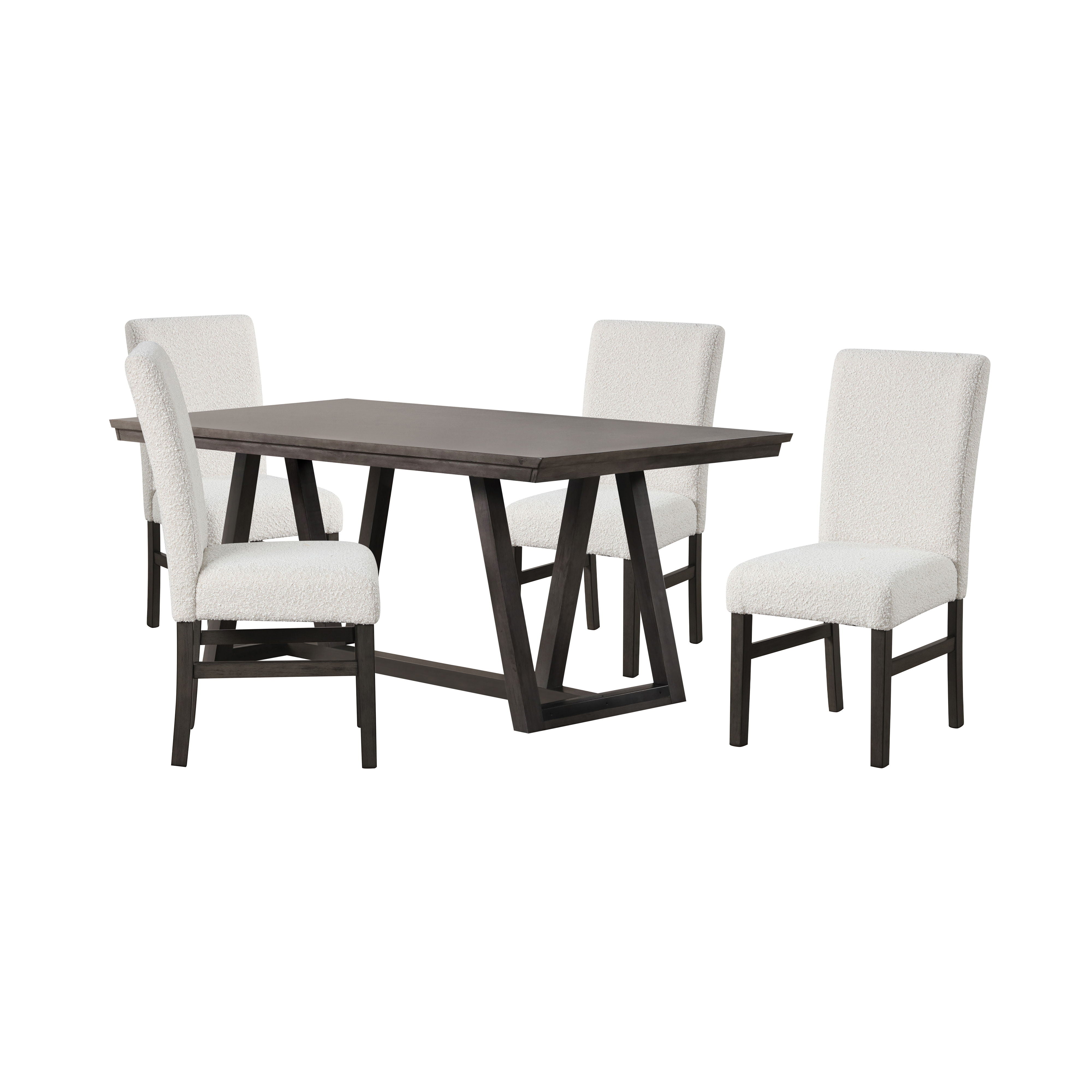 The High Line Dining Set is designed to be the centerpiece of your dining experience. Including one trestle dining table and upholstered side chairs, this set is built to last, expertly crafted from solid Acacia and Rubberwood, enhanced with high-quality manufactured woods and Birch veneers, ensuring unmatched durability and stability. The meticulously hand-applied, multi-step finish features a smooth, matte hue with sophisticated undertones, creating a modern, sleek ambiance that fits perfectly in contemporary spaces. The chairs, upholstered in luxurious bouclé fabric, offer exceptional durability and comfort, making them ideal for frequent use. The unique looped texture adds both elegance and longevity to your dining area. The table’s flat, rectangular top and crisscross leg design emphasize functionality and simplicity, making it a versatile addition to any room, from dining areas to workspaces. This dining set comfortably seats up to six guests, with the plush chairs upholstered in easy-care polyester fabric, blending elegance with practicality. Make this unparalleled dining set a marvel of your home, combining style, comfort, and lasting quality.