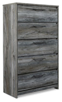 Casually cool style and lots of storage go hand in hand with this chest of drawers. A weathered finish over replicated oak grain creates an easygoing vibe, setting the scene in your restful retreat. Clean lines and modern handles provide a fuss-free look. And the chest's five roomy drawers give you plenty of space for stowing away clothes and more.