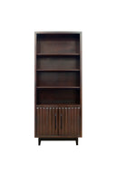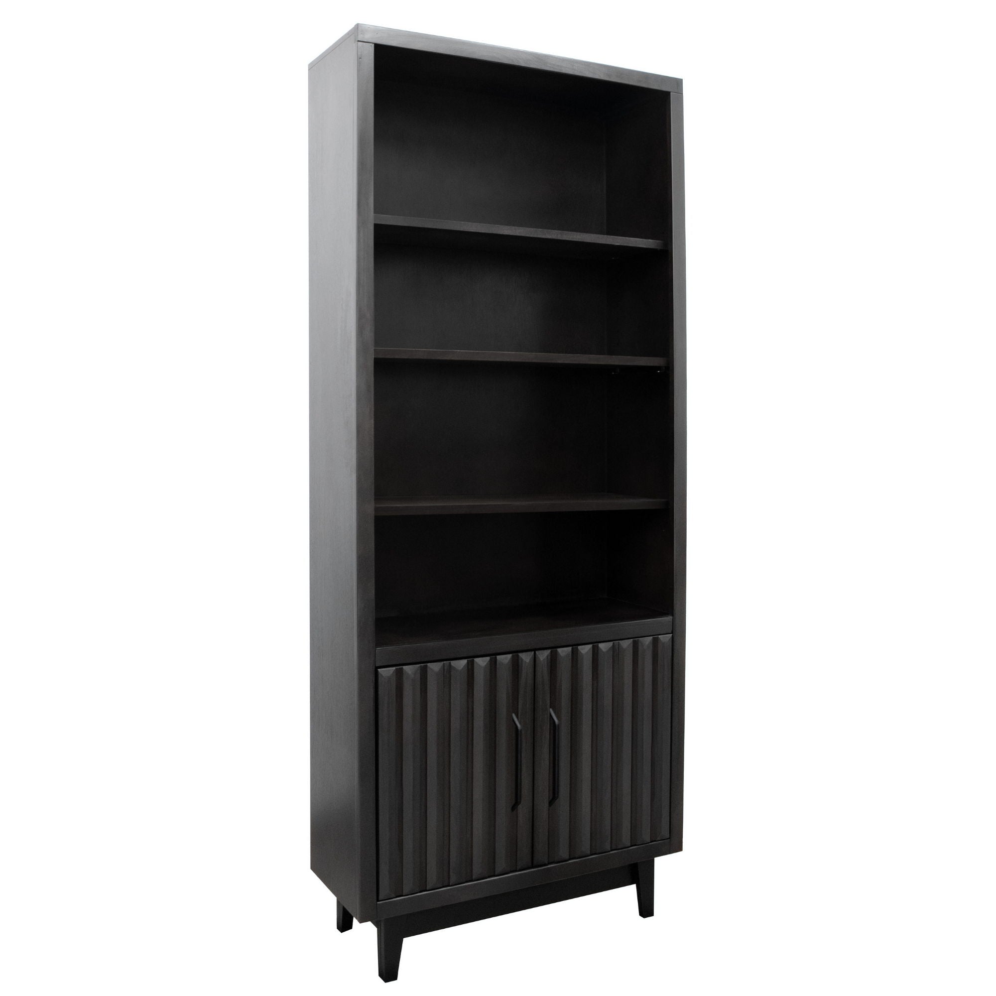Sophisticated, modern style doesn't get better than the Radiance 78 inch high Bookcase Pier. Artfully crafted from Poplar Solids and Okume Veneers, this showstopping Bookshelf Cabinet is available in two rich finishes and includes Matte Black Hardware and a sleek wood base with tapered legs. Showcase home decor and your book collection on open shelving above while concealing clutter behind two stunning fluted doors below. Pair with the matching TV Stand or Fireplace TV Stand to create a complete Entertainment Wall or display in multiples of two or three to form a chic bookshelf wall. Fully Assembled upon arrival, this piece is ready to unbox and enjoy.