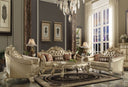 Vendome II - Sofa With 5 Pillows - Bone Synthetic Leather & Gold Patina
