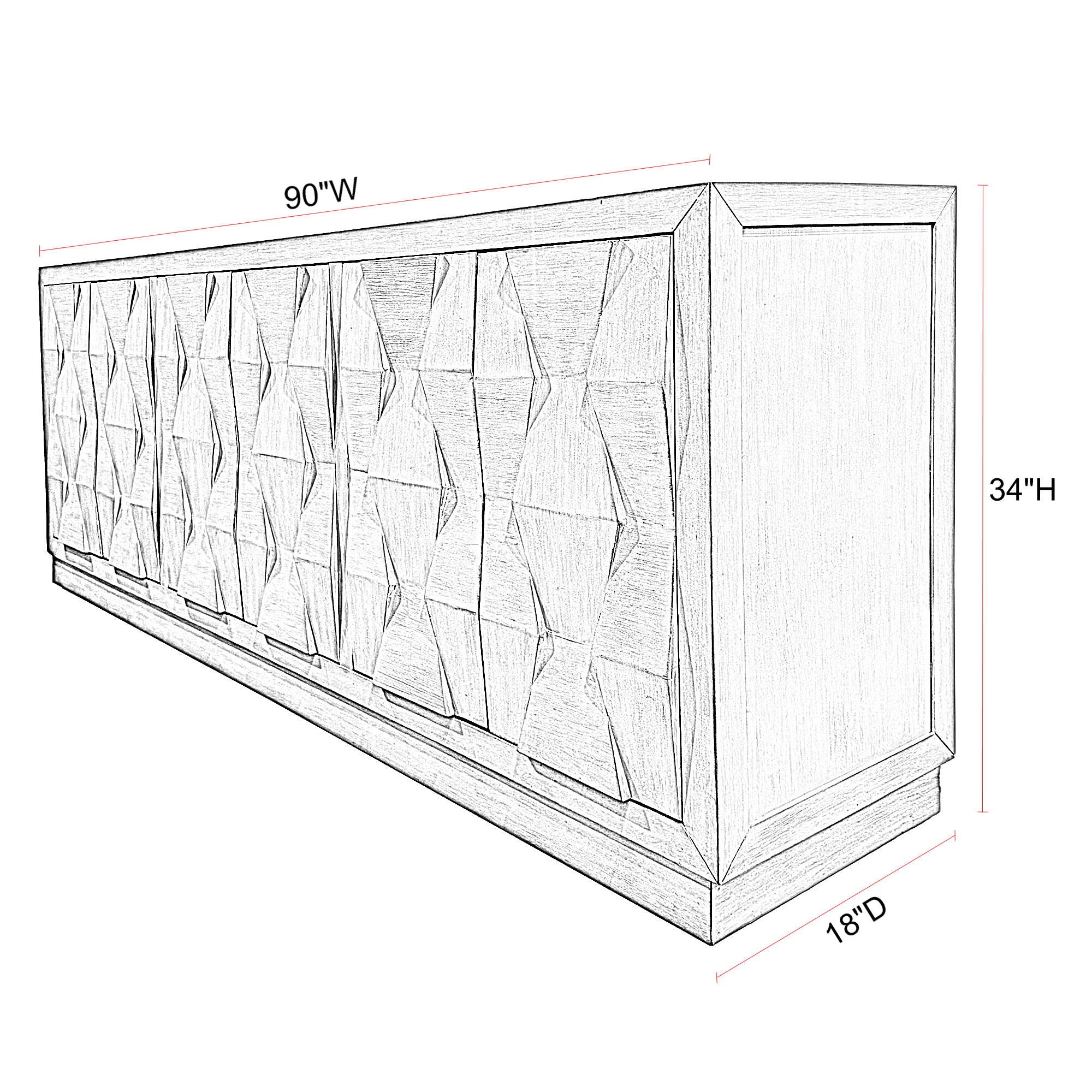 The Cortina console is a must-have for any unique home. It features a distinctive geometric design on the doors and a sturdy base for stability. This console has push-to-open doors for ease of use and is equipped with a hidden drawer and adjustable shelves, allowing for extra and always-needed storage.