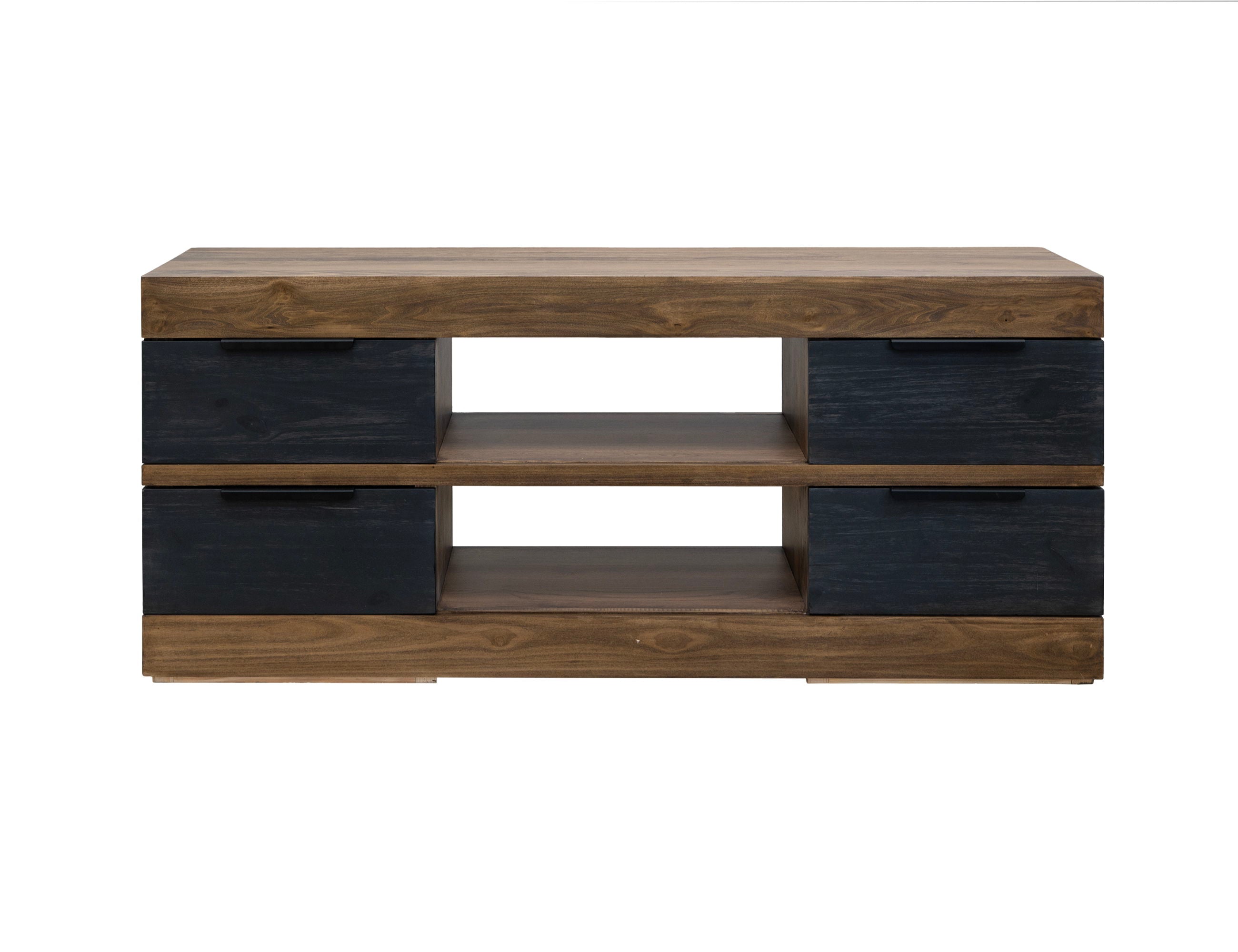 4 Drawer TV Stand. If you're in search of a timeless and elegant piece of furniture, look no further than the Tuxedo collection. Crafted by our skilled artisans from solid, lightly distressed wood, this bicolor collection is destined to be the focal point of any room.