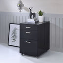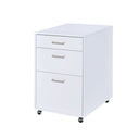 Keep your personal files safe and mobile with this Coleen file cabinet. The perfect size for personal use, including casters make this cabinet easy to move. The bottom larger drawer is the right size for file folders, middle box drawer is perfect for supplies and the top drawer is great for office supplies or other small accessories. The high gloss finish looks good in any environment and is easy to clean.