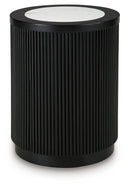 Elevate your living space with sleek sophistication. Sporting a bold drum silhouette in a matte finish, this table is topped with faux Carrara marble for a high-end look without the high maintenance. Trend-right reeded details add texture and visual interest. Subtle casters make the table easy to move when you need extra space, adding flexibility without sacrificing style.