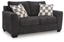 This loveseat personifies contemporary comfort. Its clean-lined frame and neutral color lend must-have versatility. Softly textured fabric makes it that much more inviting. A welcome combination of chic style and a cozy feel, this piece completes your living room with modern flair.