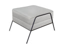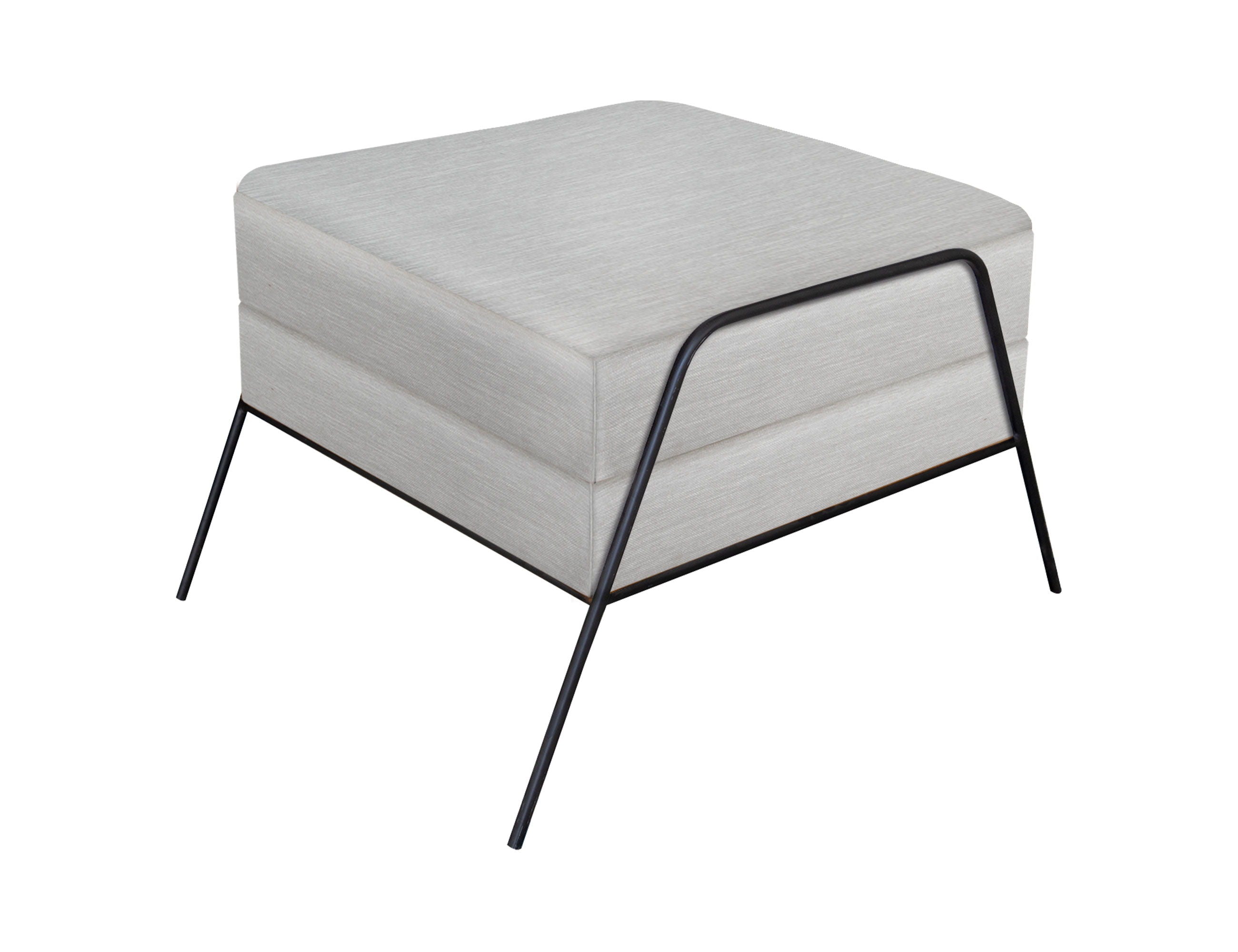 Wooden Frame & Metal Base, Footstool Ottoman. This understated ottoman brings a stylish and functional design to your living room or bedroom. The solid wood frame is wrapped in polyester in your choice of color, and it's accented with metal legs. This square ottoman is filled with foam and sinuous springs for cushioned support while you sit down or kick up your feet.