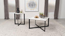 Elevate your living space with this stunning coffee table set, merging modern style with luxurious materials. Each piece features a genuine white marble top, detailed with elegant gray veining for timeless sophistication. The sturdy black powder-coated solid metal frames showcase crisscross bases, delivering a bold, architectural aesthetic. Straight edges and clean lines complete the minimalist yet striking design. Perfect for glam, industrial, or contemporary interiors, this occasional table set transforms any room with refined charm.