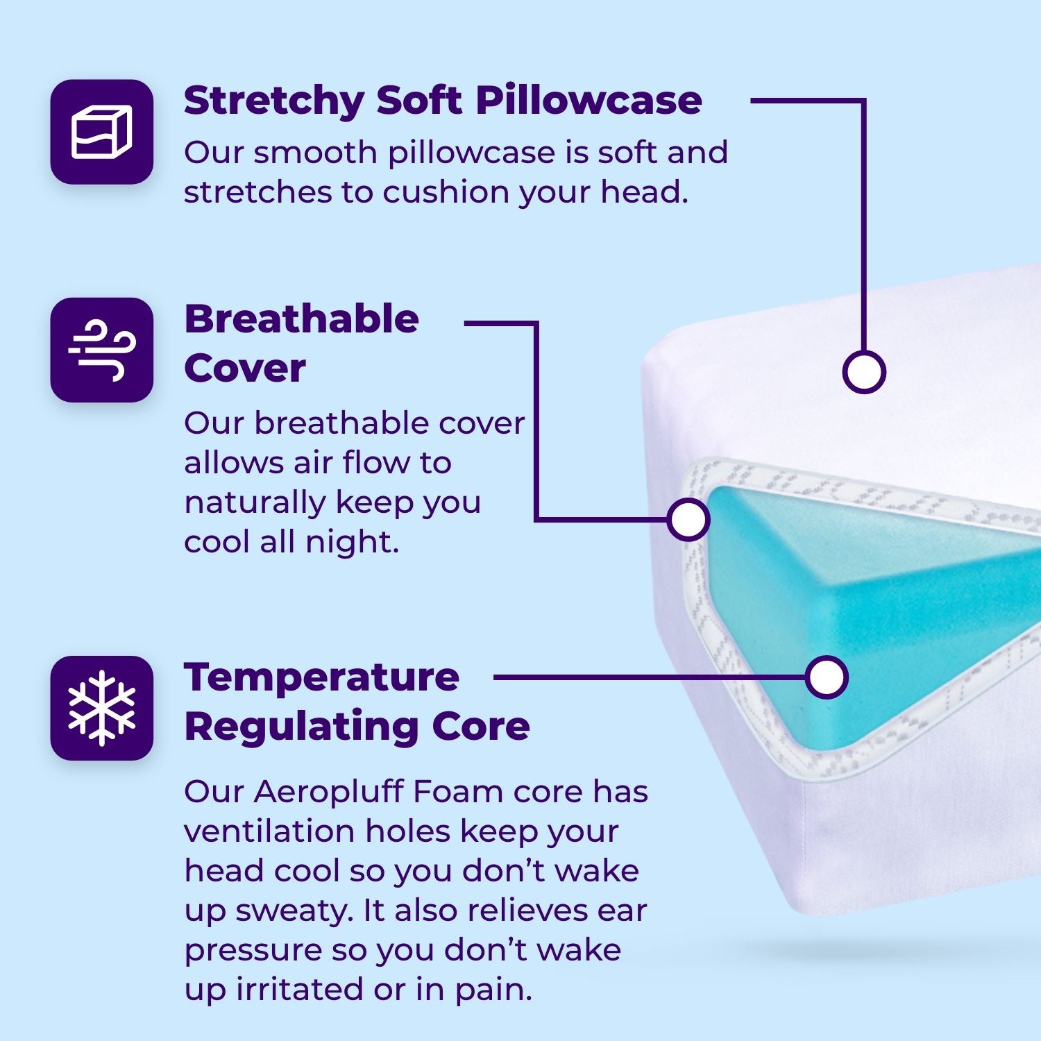 - AeroPluff Foam Core - regulates temperature and includes ventilation holes to relieve ear pressure and keep your head cool