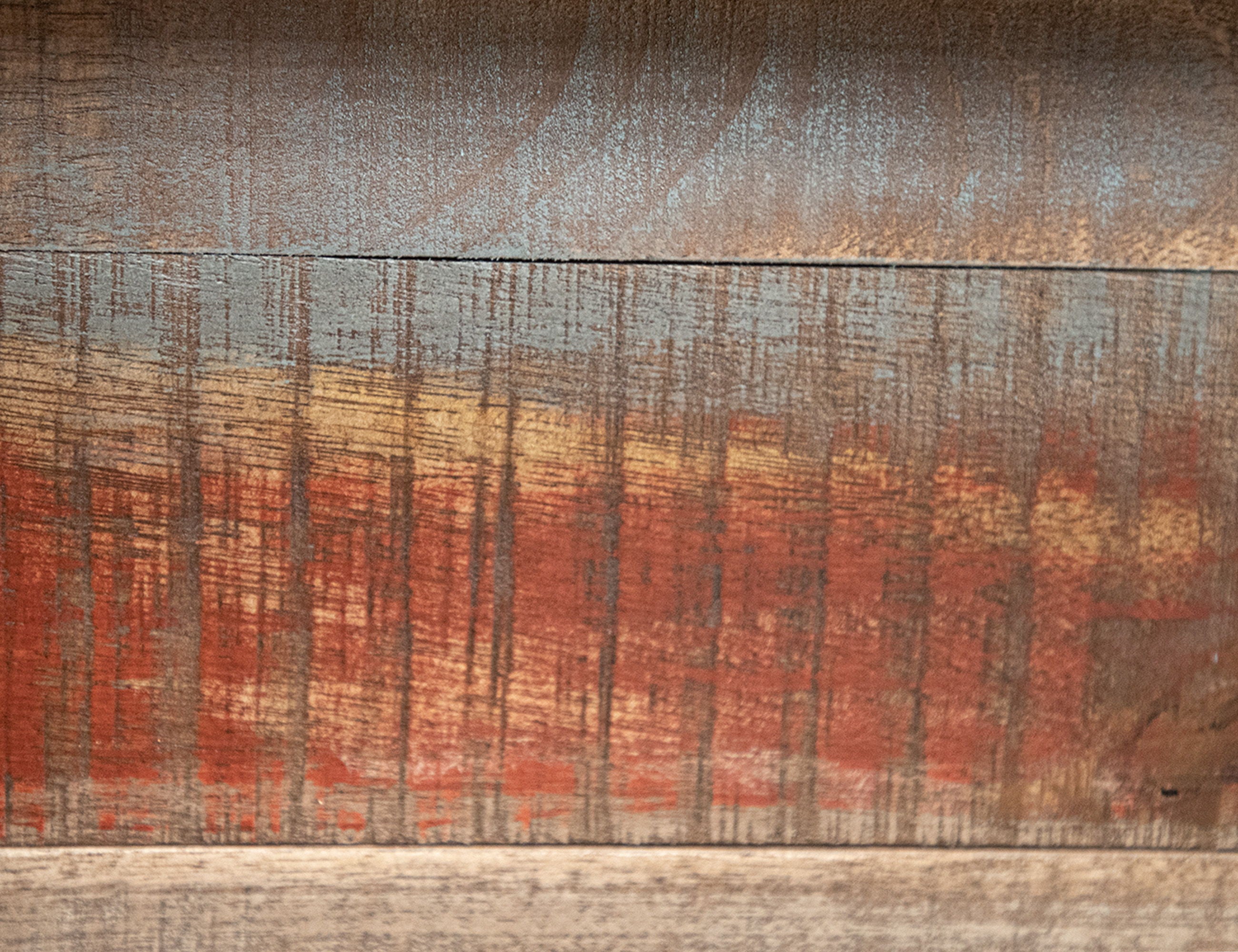 End Table. Discover the ideal rustic accent for your space within our Antique Multicolor collection. Meticulously crafted from solid pine wood and adorned with a distressed multicolor finish, each piece in this collection exudes uniqueness in every aspect.