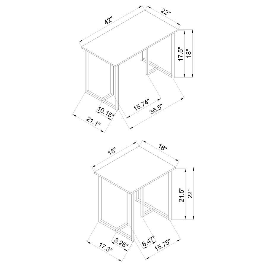 This three-piece table set includes a coffee table and two matching end tables, perfect for compact spaces such as dorm rooms or studio apartments. Each piece features a grey wood-look top made from engineered wood and laminate veneer, offering a weathered, rustic touch. The clean lines of the black powder-coated metal base create a sleek, contemporary aesthetic, blending modern farmhouse style with versatility. The open, airy design complements transitional or minimalist interiors.
