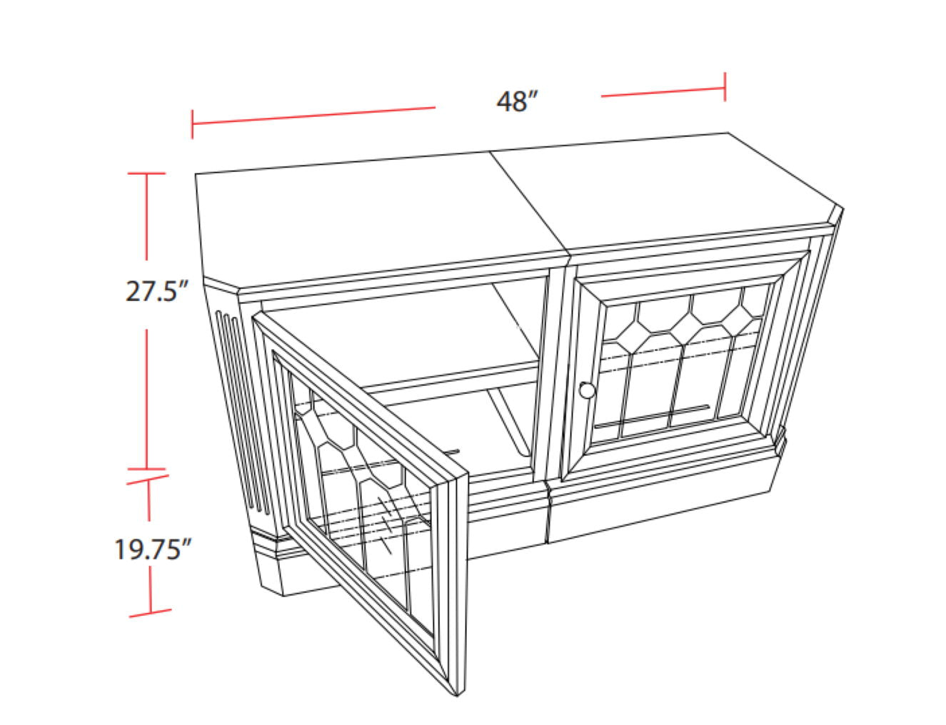 Design a focal point around your television and tie the look together with this 48-inch Expandable Console. Designed to display a variety of television sizes, it features the Huntington collection's signature Antique Vintage Pecan hand-applied finish resulting in rich depth and character. Adjustable wood shelves, glass doors, and cord management make it even more attractive.