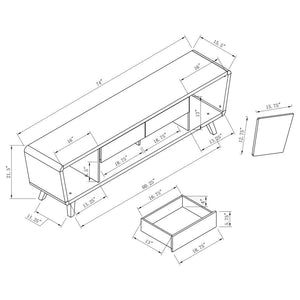 Feast your eyes on a retro gem. Borrowing heavily from mid-century modern design, this TV console offers a stylish, charming look. Revisit the 1960s with 21st century technology, enjoying space for a large-screen television, components, and media. A glossy white and chestnut finish provides a nice mixed palette with a fresh attitude. Make this TV console part of a festive retro design space.