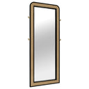 Elevate your bedroom or dressing area with this elegant full-length mirror, designed to bring both style and functionality to your space. The mirror features a sleek, rounded-edge frame finished in a sophisticated, textured material that adds a touch of warmth and refinement. Integrated hooks on the sides provide convenient storage for accessories, making it a versatile addition to your decor. Whether you're checking your outfit from head to toe or simply adding a decorative element, this mirror enhances any room with its blend of practicality and chic design. Perfect for modern and transitional spaces, it's a must-have for creating a polished look in your home.