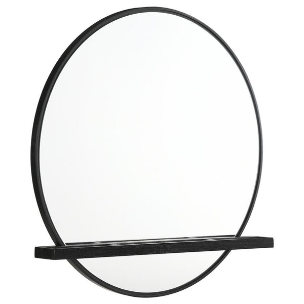 Make the most of your dresser space with this elegant, modern, dresser mirror, designed with a clever built-in tray below and a spacious round mirror above to help you prepare for the day. A wire-brushed sand wash wood frame presents an earthy light tone hue. The felt-lined tray secures jewelry and essentials, keeping a clutter-free dresser surface for restful bedroom retreats.