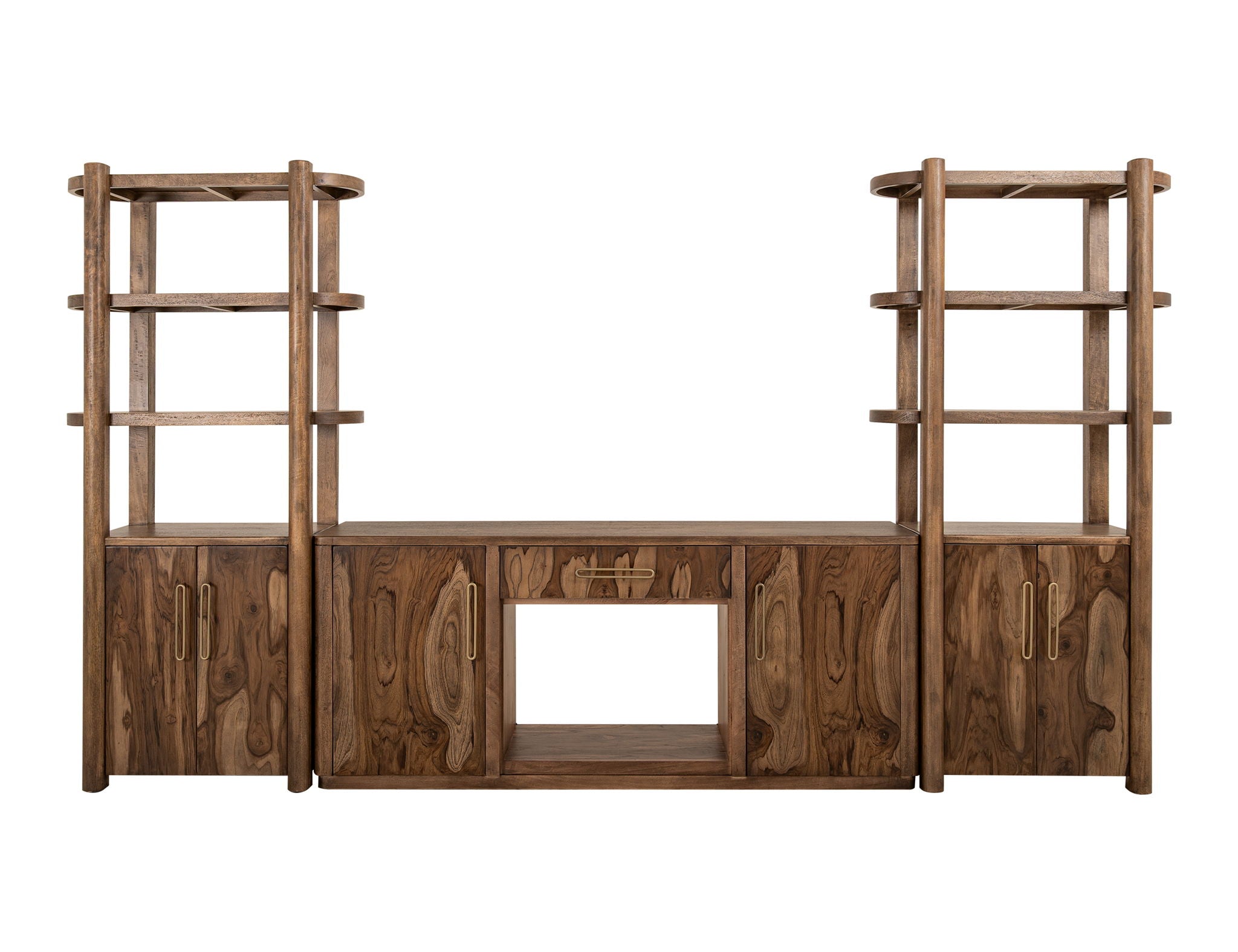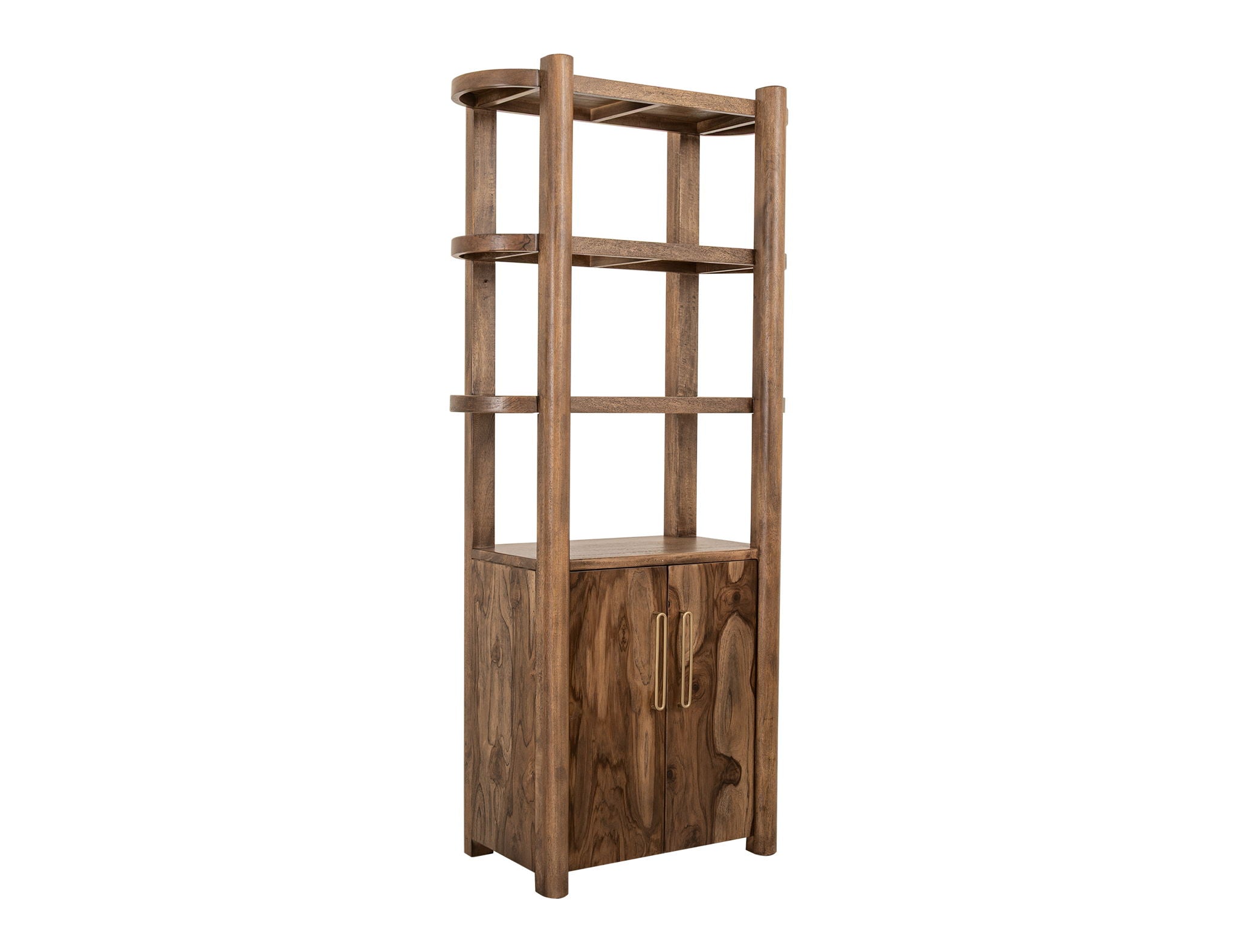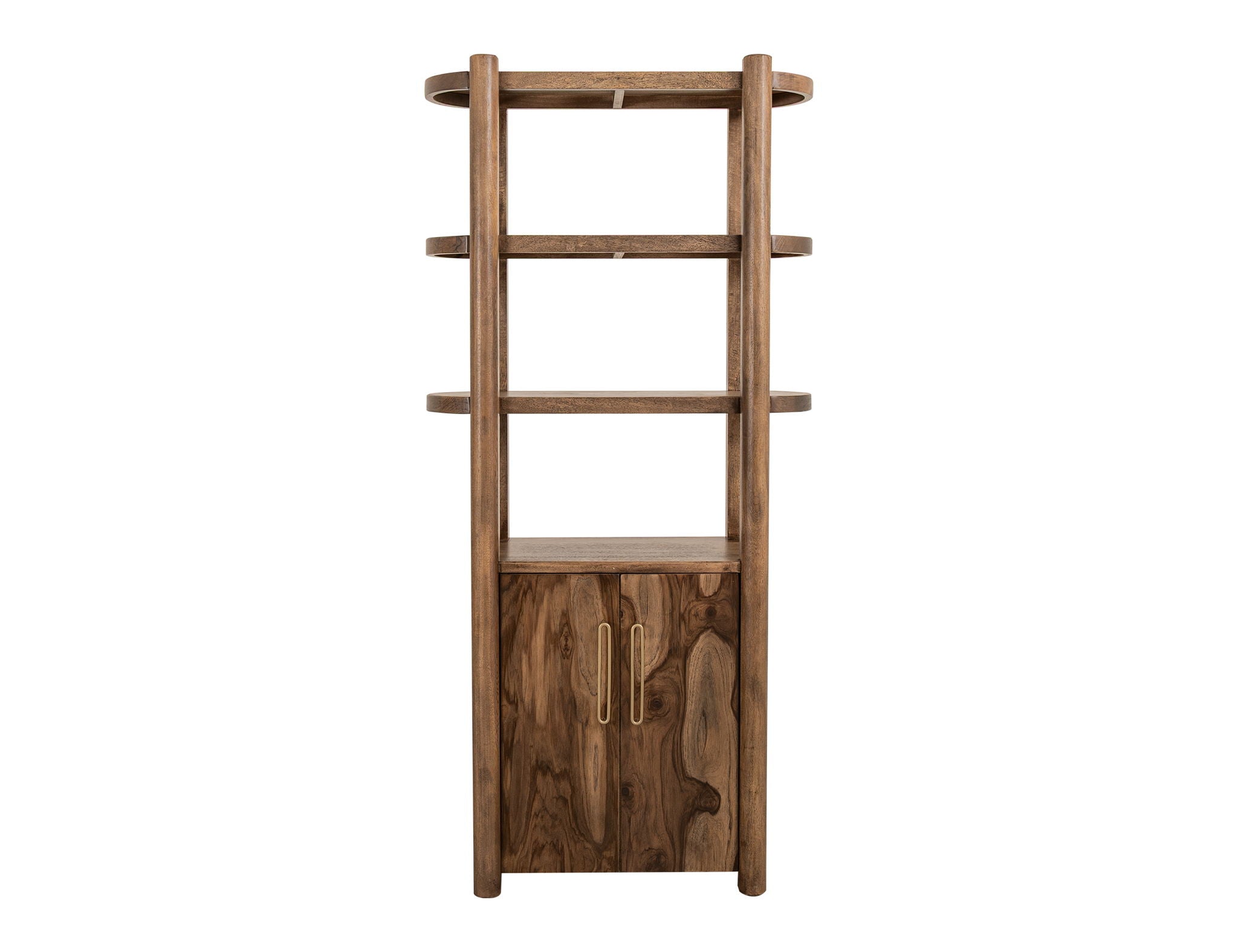 2 Door, 3 Shelf Pier. Our exquisite Balam collection is meticulously handcrafted using high-quality mango and teak wood. This simple yet striking collection is designed to infuse your space with an organic, modern aesthetic. The Pier - Boocakse boasts a unique organic shape, featuring elegantly curved oval shelves at the top and a storage cabinet, adding a touch of sophistication to any room.