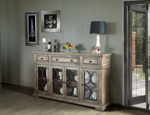 4 Glass Doors 3 Drawers Console. Introducing the Bonanza Collection, meticulously crafted from solid pine wood. Each piece boasts a timeless design, characterized by its classic allure and adorned with a hand-applied, multi-step lacquer finish. This meticulous finish not only enhances the natural beauty of the wood but also imparts a unique antique appearance, adding a touch of elegance to any space. The Bonanza Collection is more than just furniture; it's a statement of sophistication.