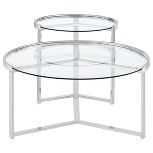 Delia - 2 Piece Round Glass Top Nesting Coffee Table - Chrome