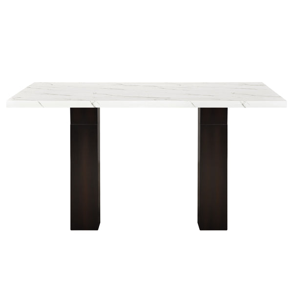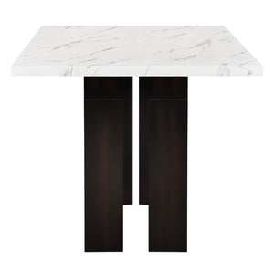 - Contemporary Style: This dining table''s sleek white faux marble tabletop with subtle gray veining provides a modern and luxurious aesthetic. The dark pedestal legs offer a bold contrast and add to the table''s contemporary appeal.