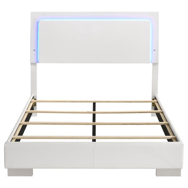 Felicity - Wood Eastern King LED Panel Bed - White High Gloss