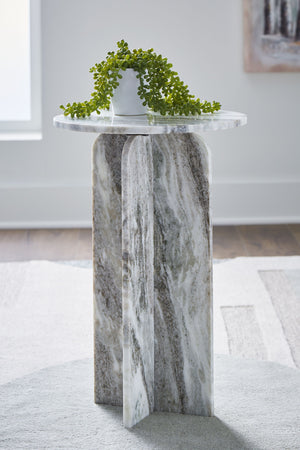 Style to aspire to. This accent table appeals to your eye for artisanal design at an affordable price. The all-marble construction makes it a sculptural addition to your curated space. Whether this table is standing alone or with decor on its smooth top, the beauty of natural stone makes a stunning impression.