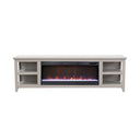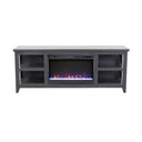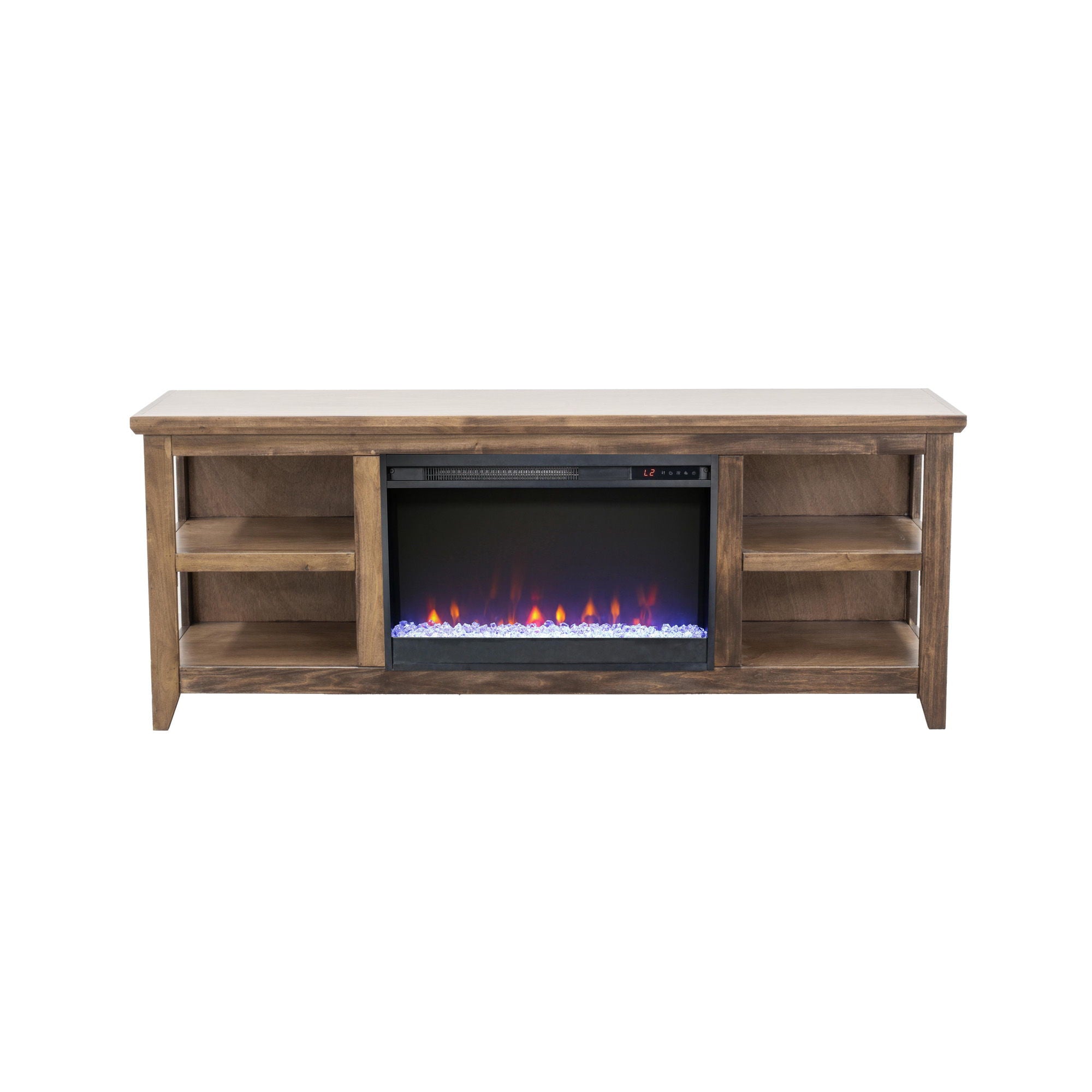 The Studio Fireplace TV Stand boasts simple, versatile, transitional style. Crafted from Poplar Solids and Okoume Veneers, this piece is available in three finishes. It will accommodate TVs and provide ample space for media components and more. The fireplace insert with clear crystals will keep you cozy while binge watching your favorite movie or TV series.
