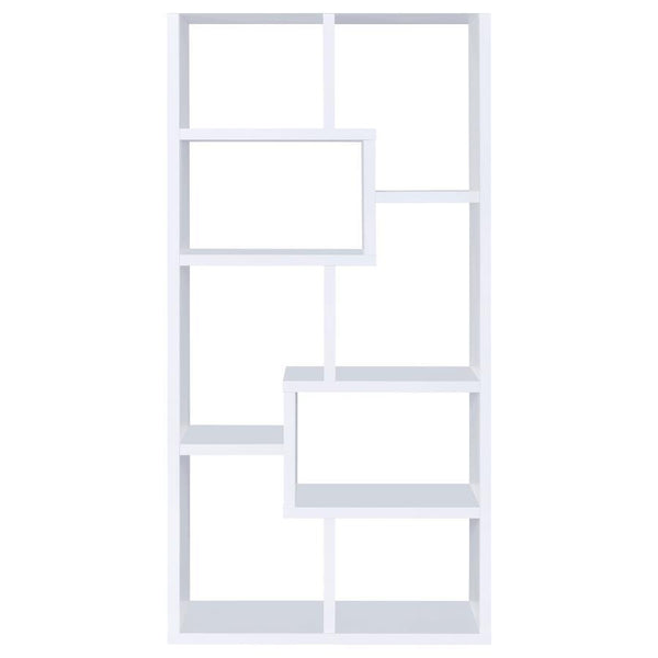 Kick your home decor up a notch. This striking bookcase has a bold, geometric design that adds an artistic accent to any room. With convenient shelves, it offers convenient storage for anything from books to memorabilia to trophies and more. Crafted from MDF, particle board, and engineered veneer, it's as sturdy as it is stylish. Available in four stunning shades, there's an option to match the color palette of any home.